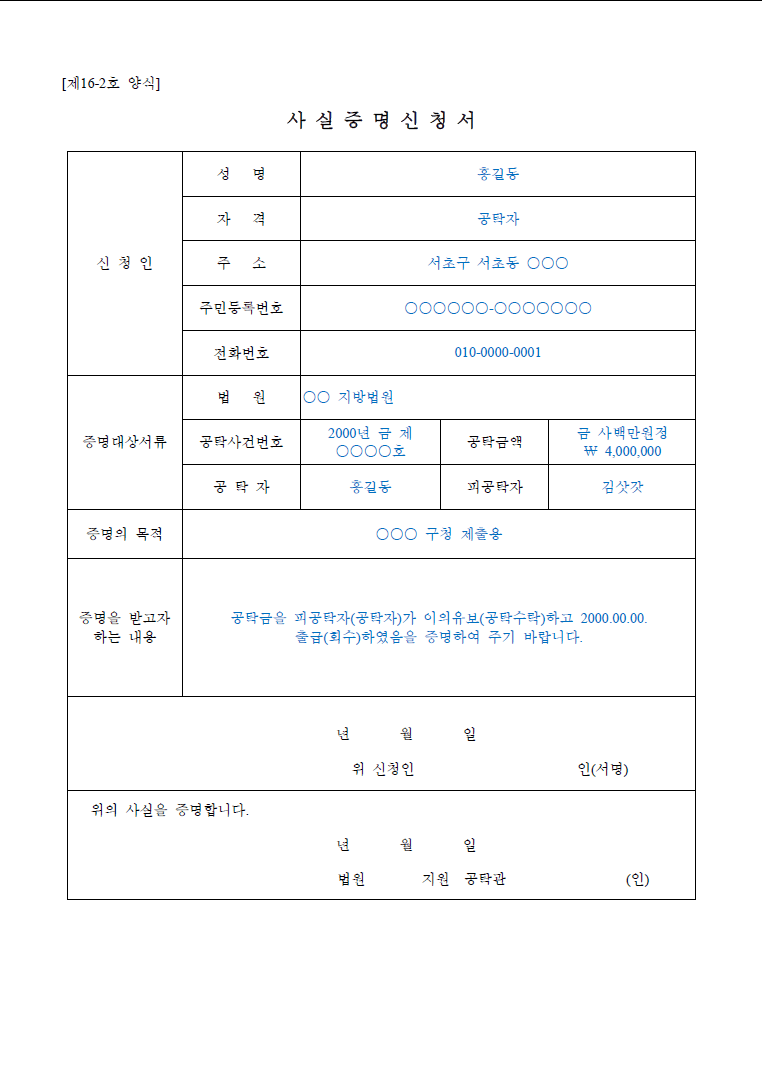 사실증명신청서