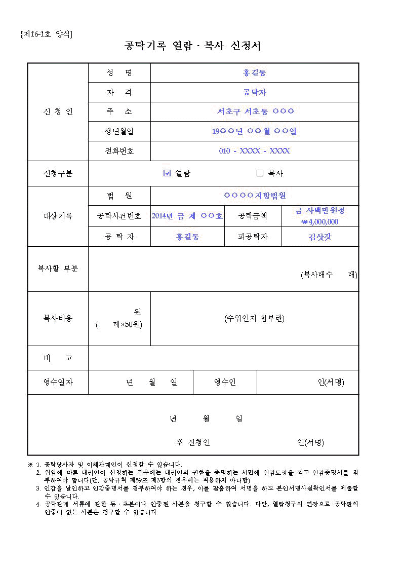 공탁기록 열람 복사 신청서